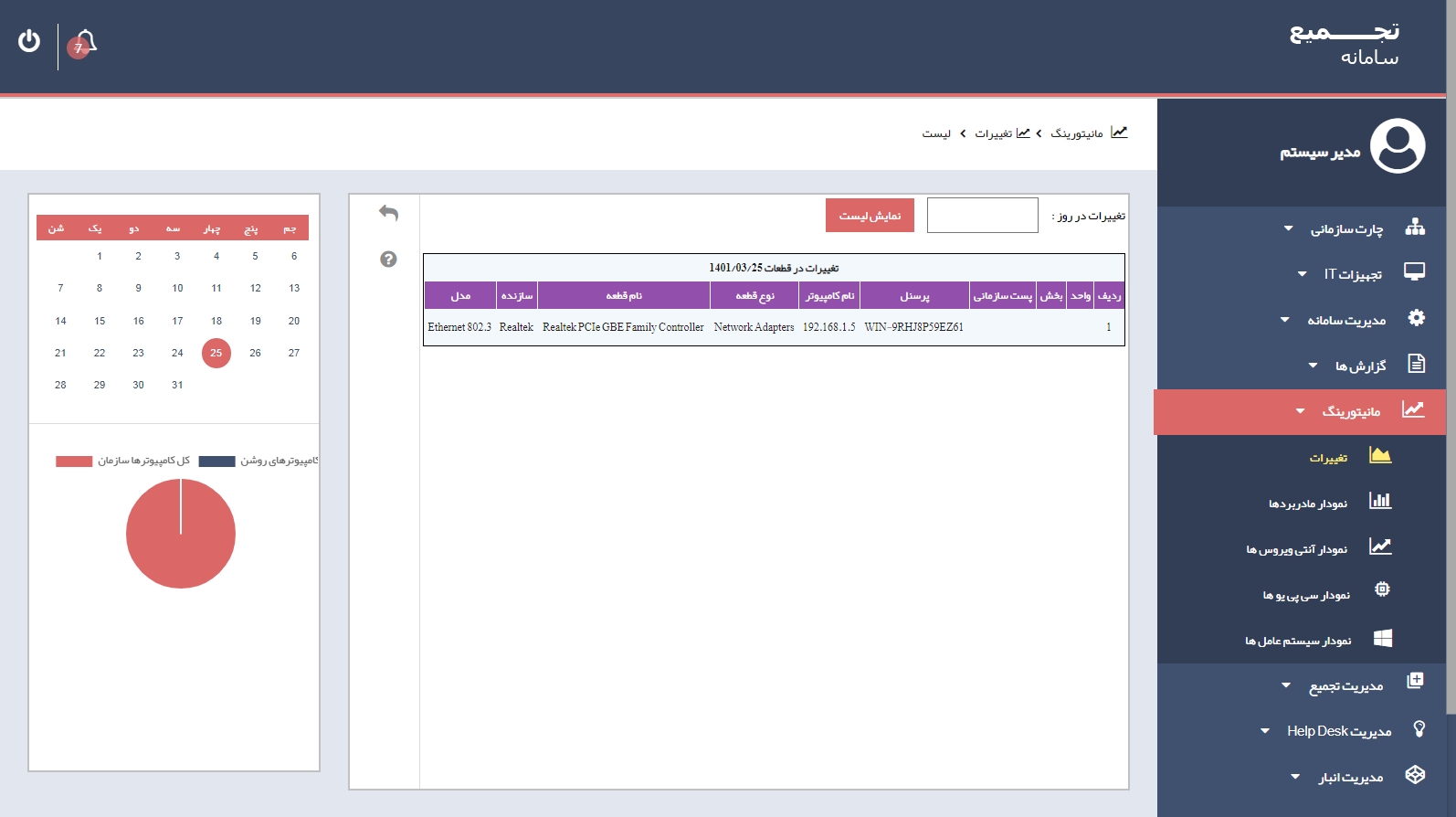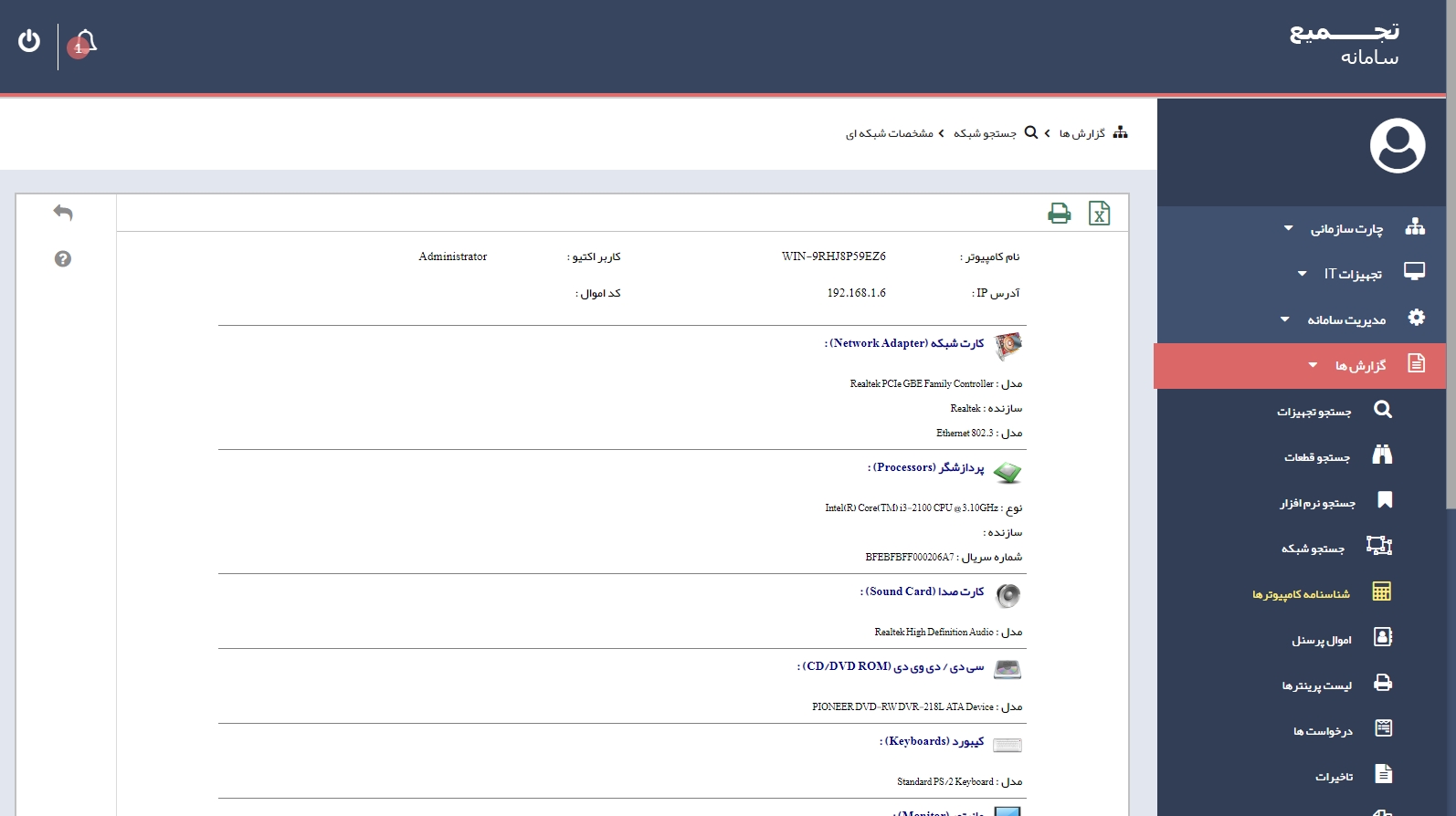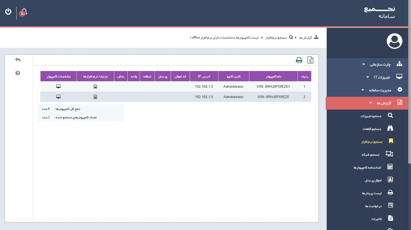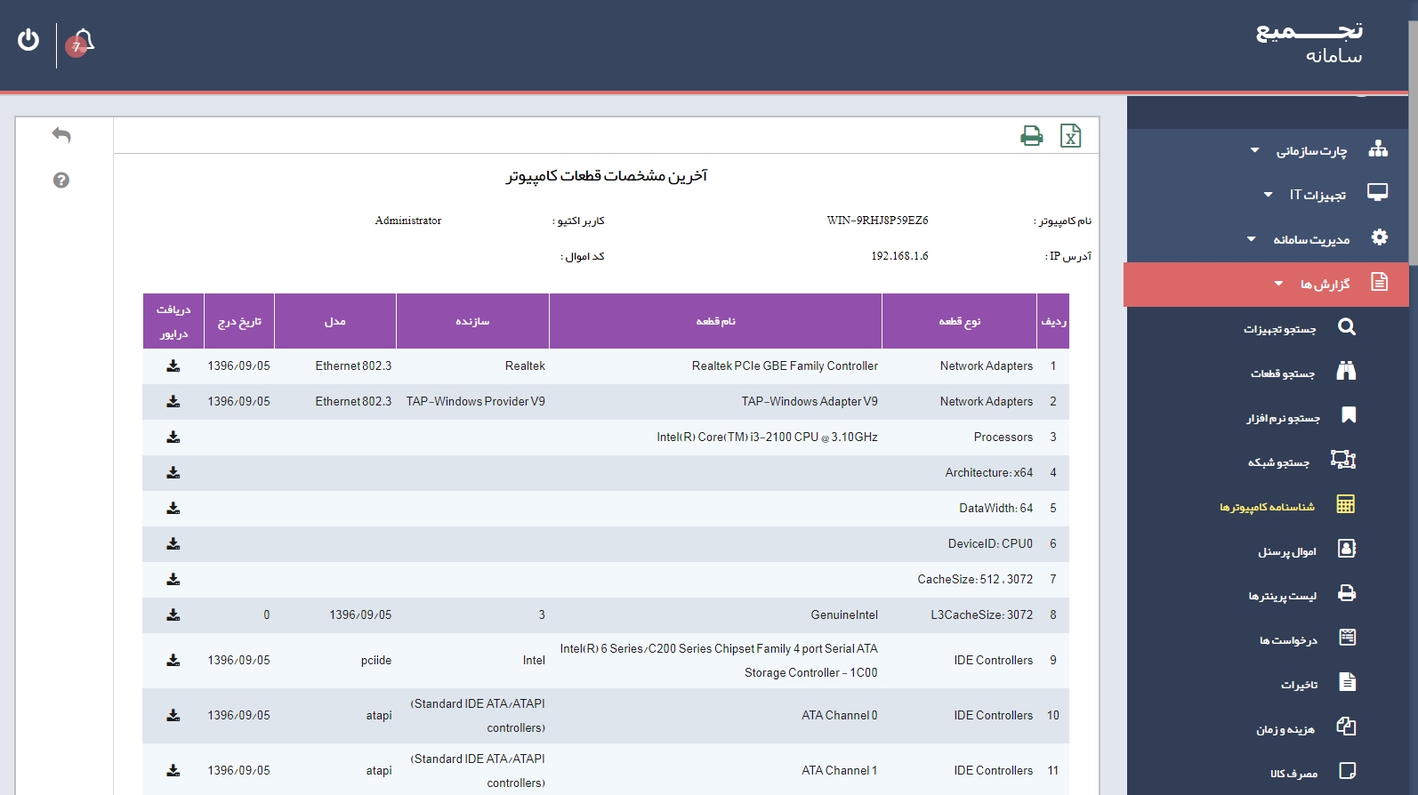 استخراج تمام قطعات کامپیوتر های کاربران سازمان در یک روز