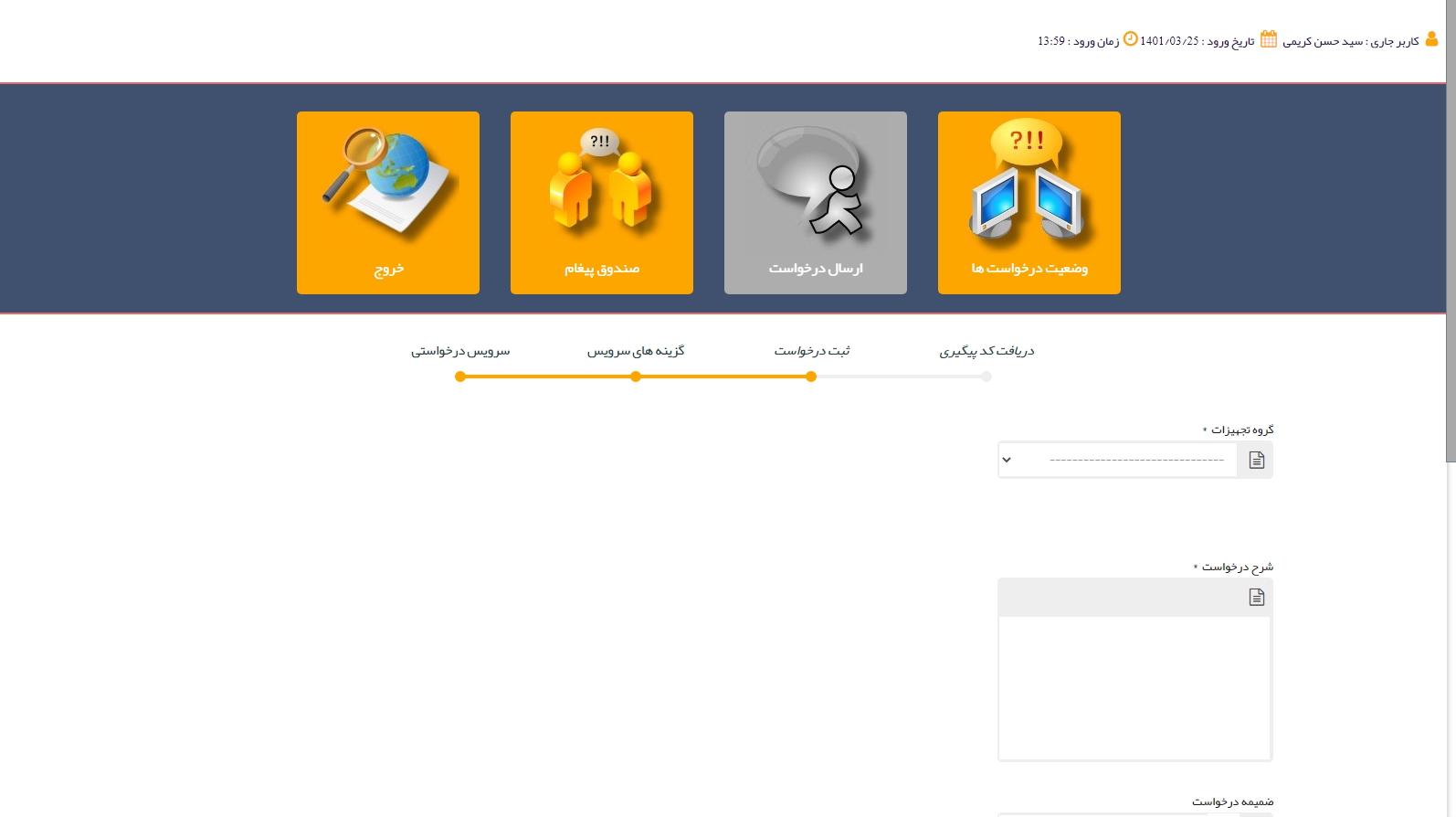 سوابق درخواست کاربر : کاربر تا بحال چه درخواست هایی را به واحد تعمیر و نگهداری IT ، ارسال کرده است . مدیر می تواند در این بخش به بررسی درخواست ارسال شده بپردازد و در صورت وجود تکرر در درخواست به آن رسیدگی نماید.