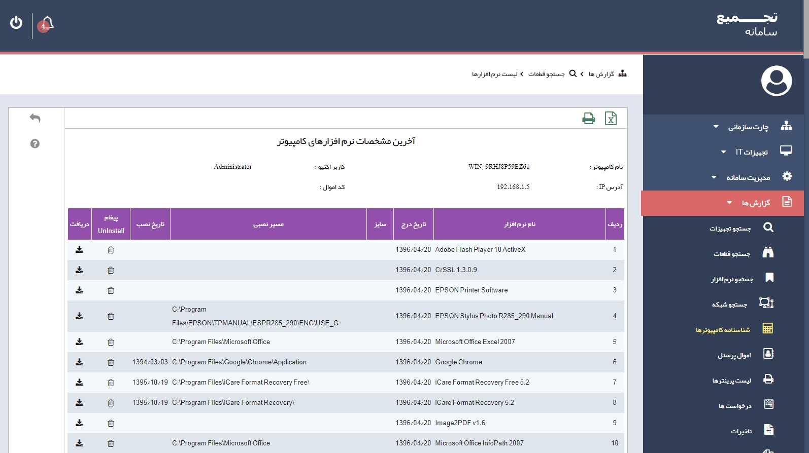 امکان گزارش گیری روی نرم افزارهای نصب شده
