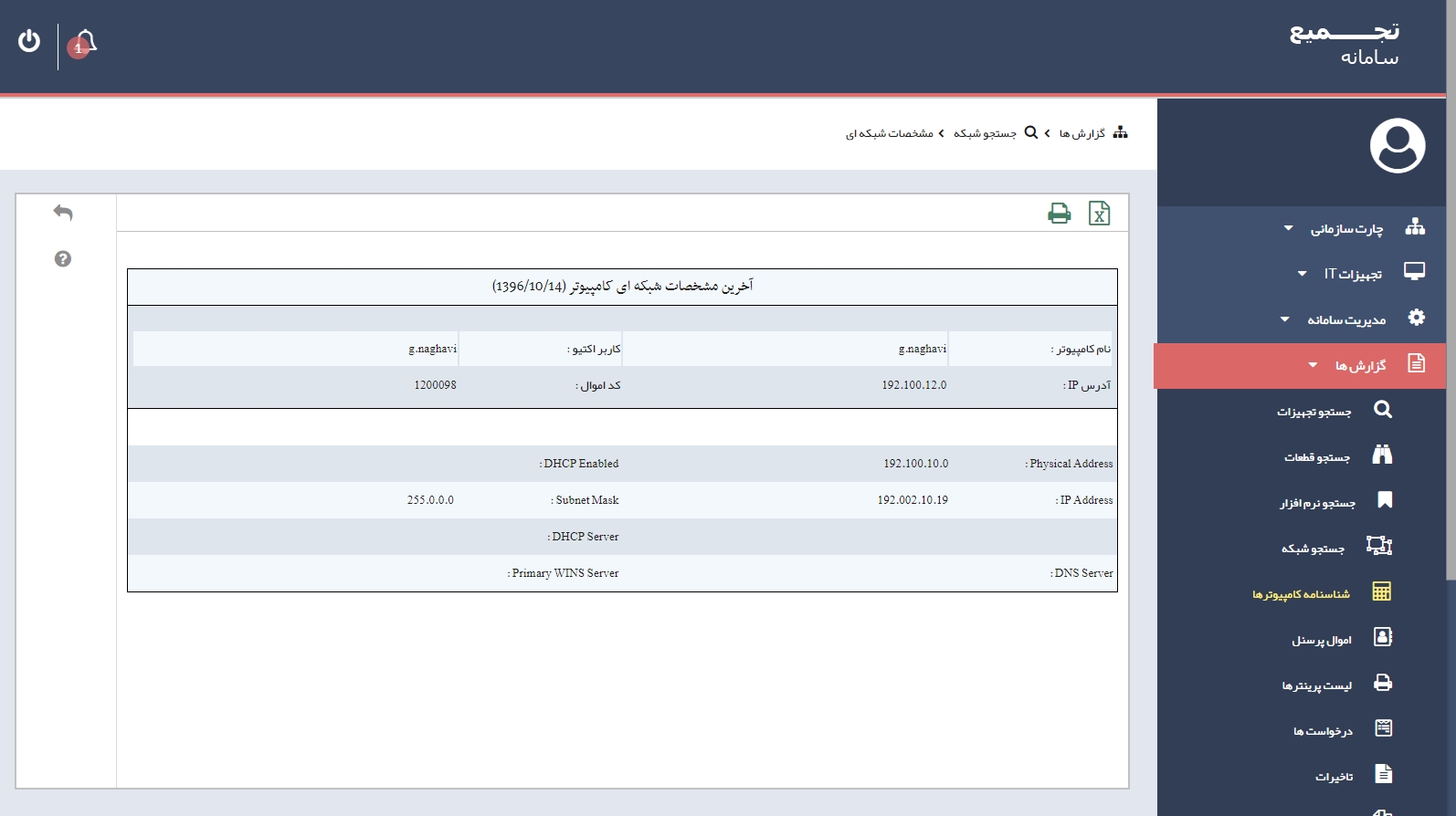 امکان دسترسی به مشخصات شبکه ای هر کامپیوتر مانند آدرس IP و Mac Address وجود دارد . تمام آدرس های IP در سازمان بروزرسانی می شود.
