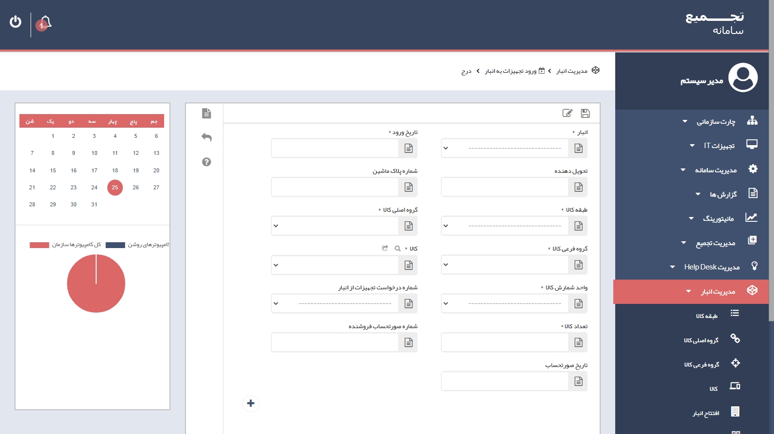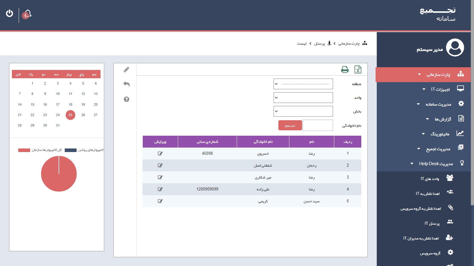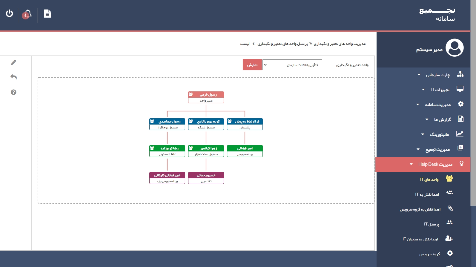 امکانات مدیریتی : کارتابل مدیر واحد IT